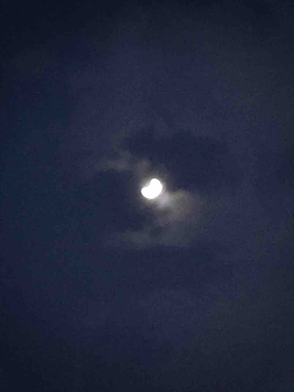 薄っすらと雪雲がかかり、ぼやけていますが、欠けていっているのが分かります。
